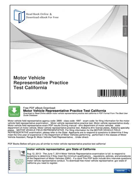 Free PDF ca motor vehicle field representative study guide Hardcover Internet Archive